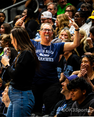 BALTIMORE, MD – March 17, 2026: A South River supporter celebrates in the stands during the MPSSAA 3A Boys Basketball State Championship game against Colonel Zadok Magruder at Chesapeake Employers Insurance Arena in Baltimore, Maryland. South River defeated Magruder 67-50 to win the program’s first state title. (Photo by OK3Sports/Olen Kelley III)