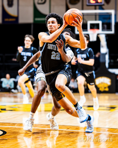BALTIMORE, MD – March 17, 2026: South River’s Jaden McDuffie (22) secures possession while attacking the basket against Colonel Zadok Magruder during the MPSSAA 3A Boys Basketball State Championship at Chesapeake Employers Insurance Arena in Baltimore, Maryland. McDuffie finished with 21 points and 8 rebounds as South River defeated Magruder 67-50 to win the state title. (Photo by OK3Sports/Olen Kelley III)